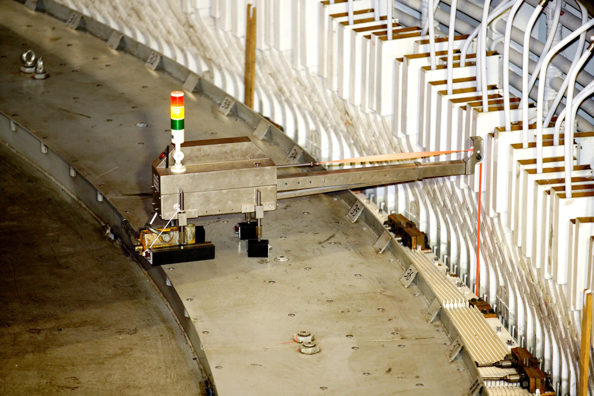 三峽電站10號(hào)機(jī)組轉(zhuǎn)子直徑超18米,起吊總重量約1800噸,是機(jī)組最重要的核心部件之一。機(jī)組定、轉(zhuǎn)子間隙只有30多毫米,若定子與轉(zhuǎn)子發(fā)生碰撞,將對(duì)設(shè)備造成嚴(yán)重?fù)p傷。因此,每次轉(zhuǎn)子吊裝作業(yè),精度都需要控制在毫米級(jí)。而這次作業(yè),則因?yàn)檫@幾位“忠誠小衛(wèi)士”的加入,讓檢修現(xiàn)場增添了幾分從容。